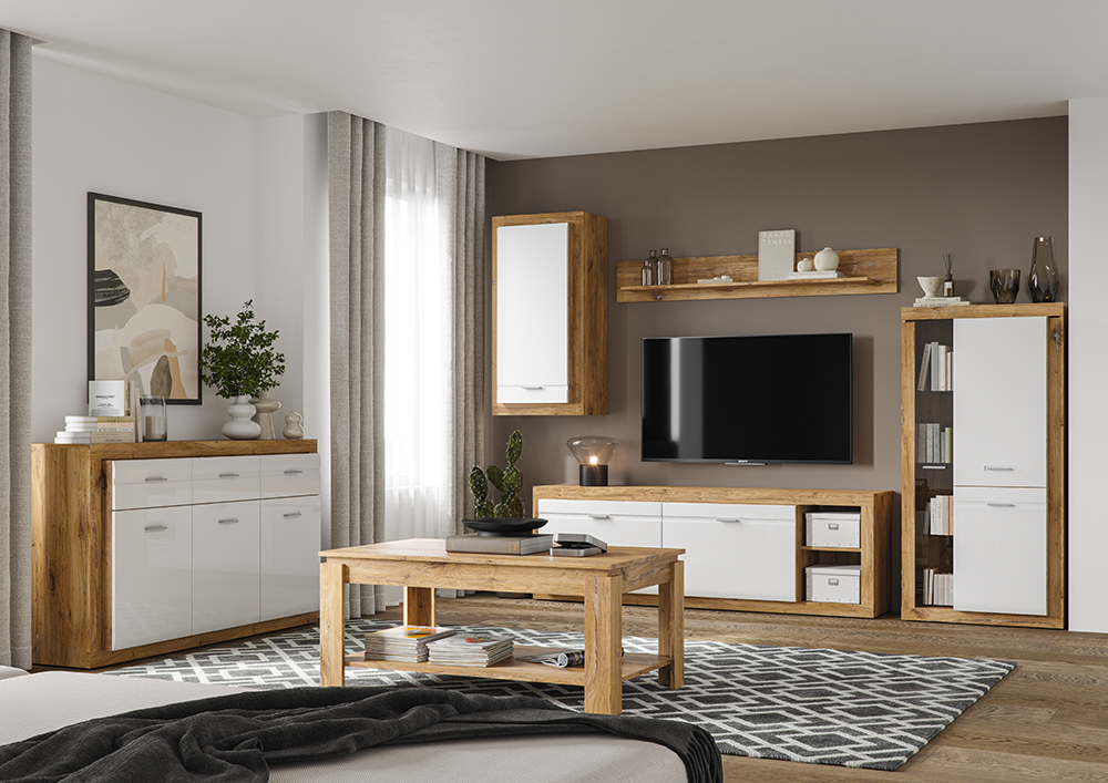 Природное сочетание текстуры натурального дерева Дуб Нокс и Белого глянца позволяет создать гармоничный и современный интерьер.