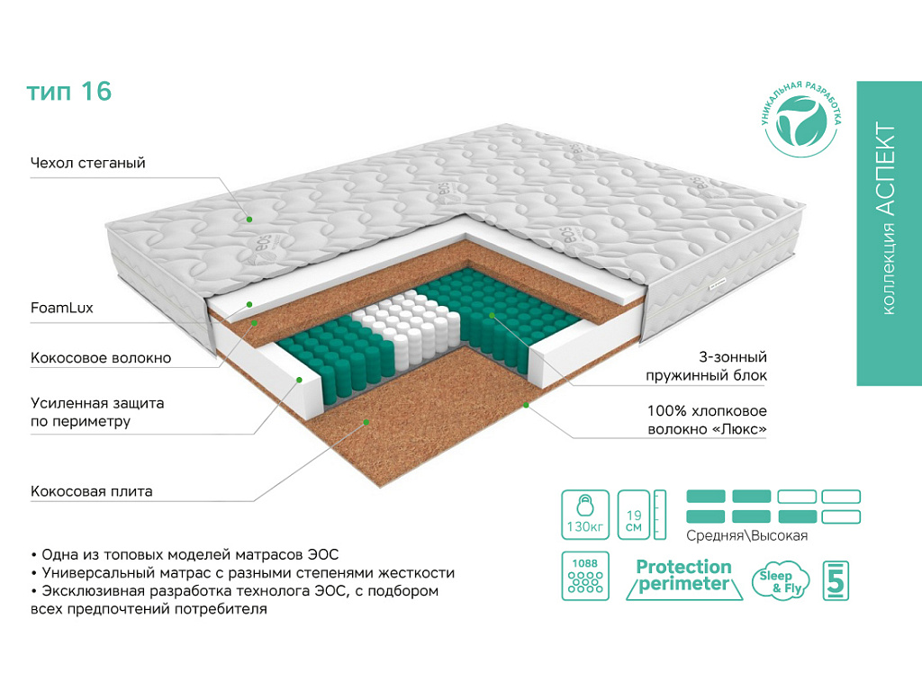 Матрас Аспект Тип 16 (Премиум чехол Care)