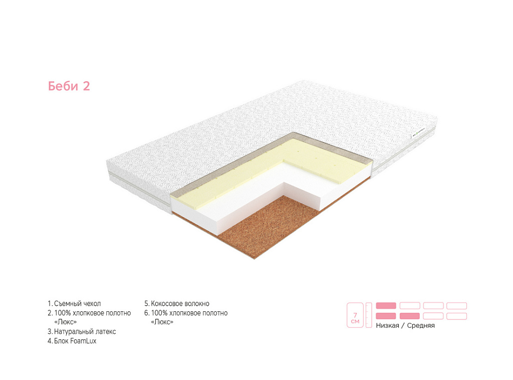 | Материал | Латекс, Хлопковое полотно, Чехол, FoamLux, Кокосовое волокно |