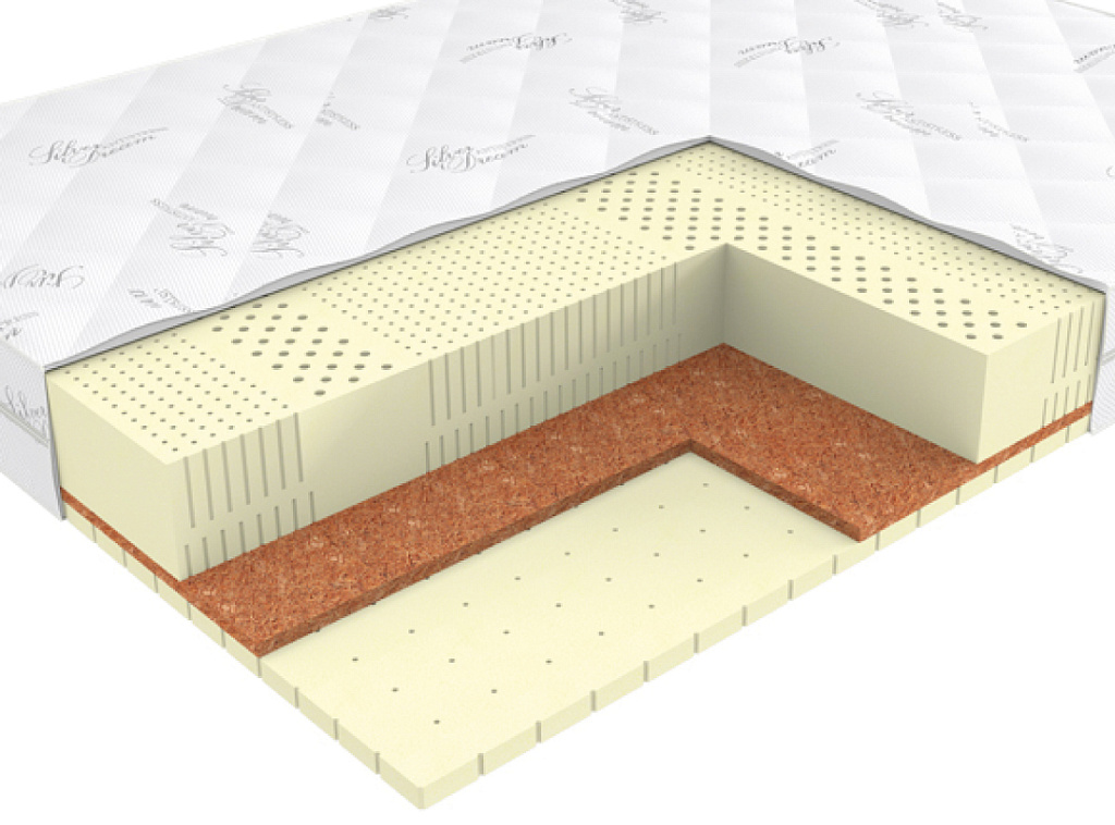 Натуральный гипоаллергенный материал. Благодаря пропитке из натурального латекса, волокна прочно скреплены в цельную плиту. Кокосовое волокно придает матрасу жёсткость и обладает бактерицидными свойствами. Производство – Enkev, Польша.