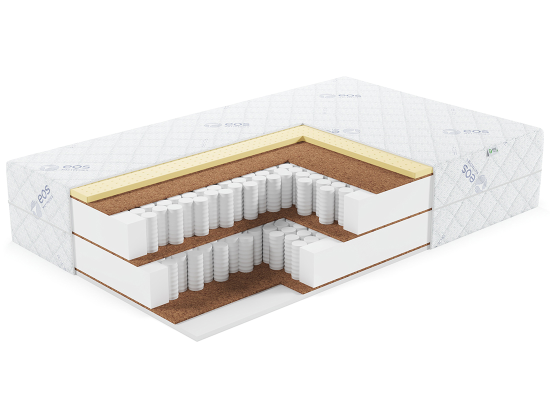 | Материал | Латекс, Блок независимых пружин, Чехол, FoamLux, Кокосовое волокно, Латексированная кокосовая плита, Усиление по периметру матраса |
