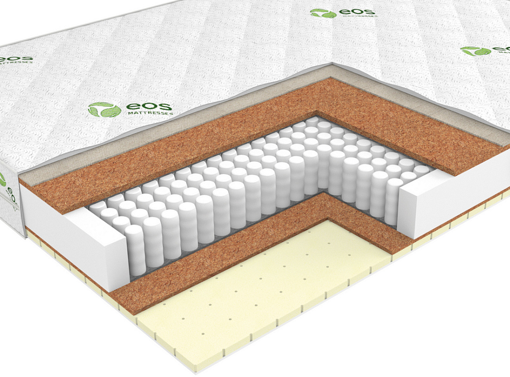 | Материал | Кокосовая койра, Латекс, Блок независимых пружин, Хлопковое полотно, Чехол, Усиление по периметру матраса |